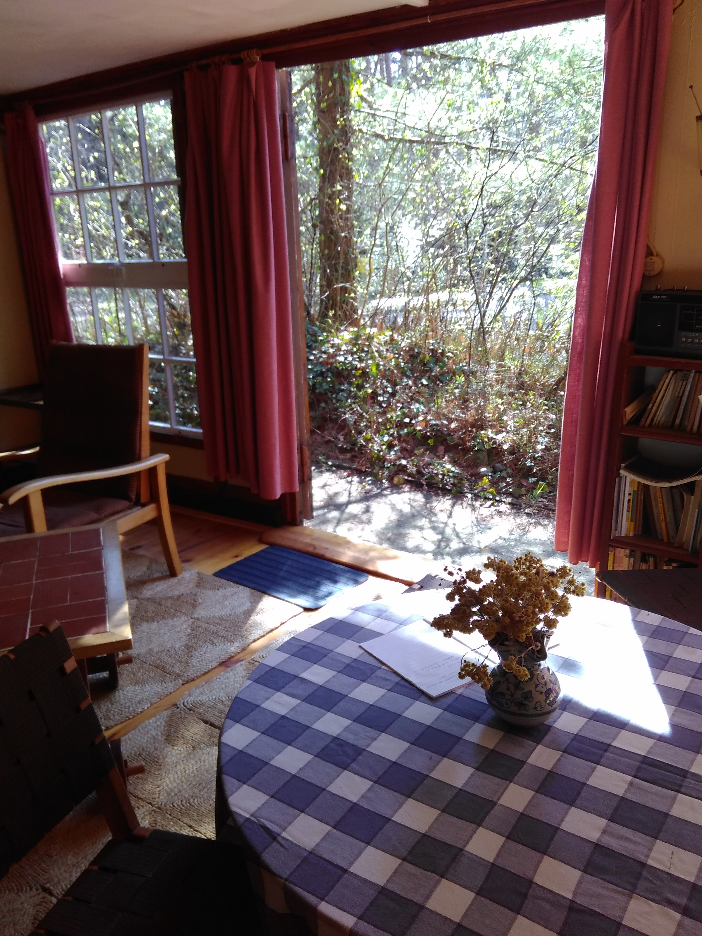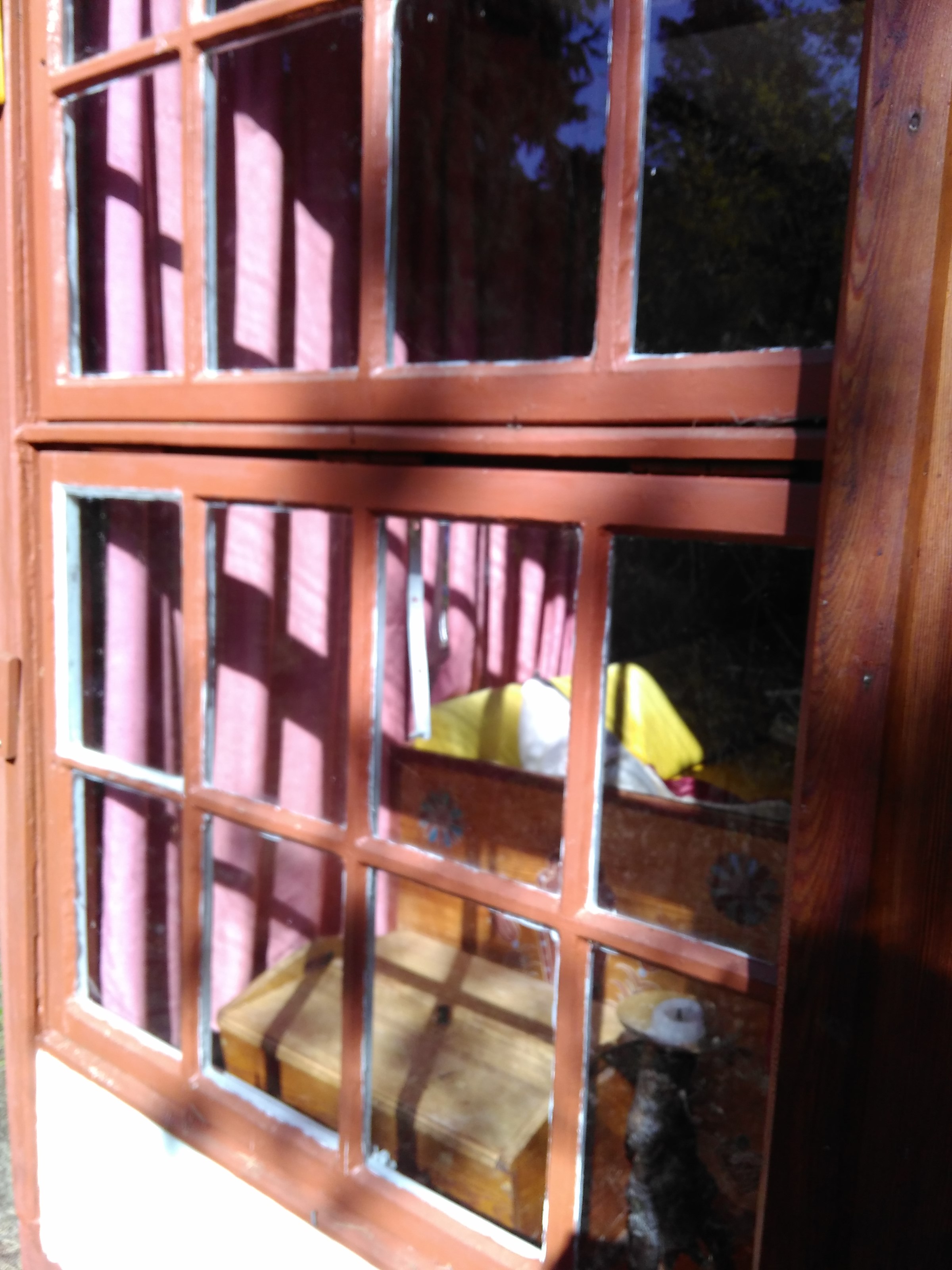 - Fenster lassen sich mit dem Vierkantschlüssel (Schlüsselbrett in der Küche) öffnen (linkes Fenster im großen Zimmer: rechtes oberes Fensterschloss hängt, kann daher nur mit eingeführtem Schlüssel geschlossen werden).