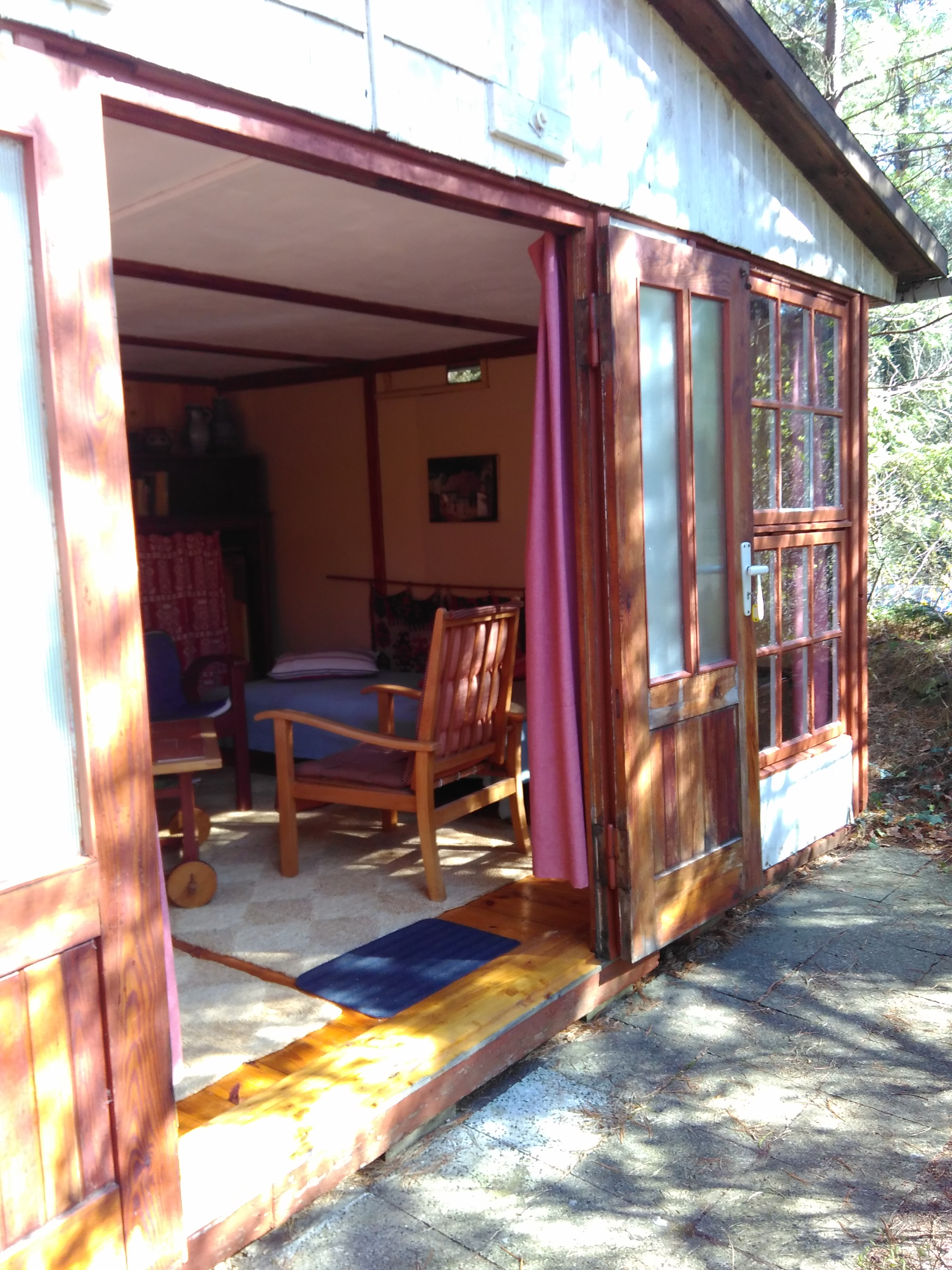 - Bettwäsche, Handtücher, Geschirrhandtücher (Pannenhilfe) und Tischdecken in den Wandschränken im kleinen Zimmer, der gelbe Schrank ist für Gäste bereit.